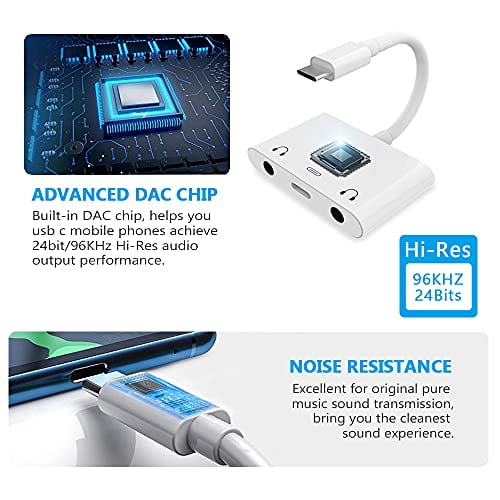 Usb C To Dual Trrs 3 5mm Aux Headphone Jack Adapter With Charging Type C Earphone Audio Splitter Converter Compatible For Samsung 2018 Ipad Pro Google Pixel Htc Huawei Etc White Walmart Com